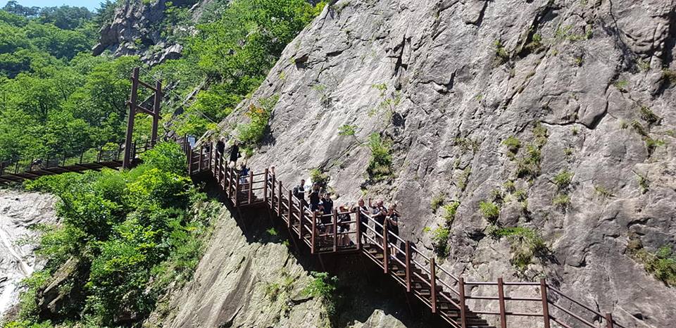 The first aspect of the summer camp which was attended by over 70 people people from The UK, France, Switzerland, USA, Newzealand, Ireland and The Congo, was to hike 3Km up a mountain in Seoraksan National Park. It was the hottest it had been in 23 years and the temperature was 37 degrees. Below are some pictures of the hike up the mountain.